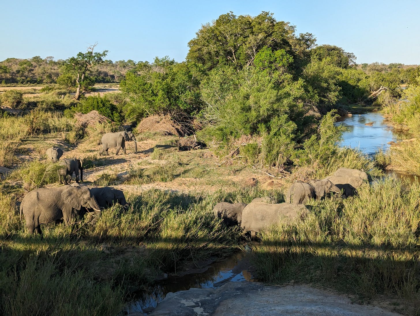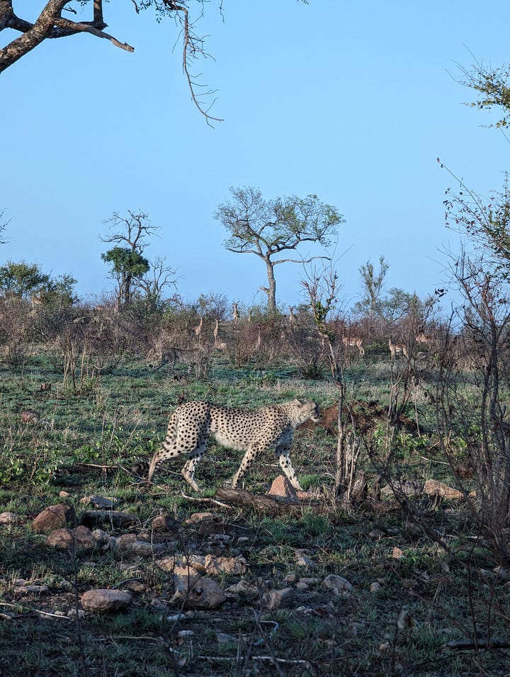It’s 5:23 am and the sun rises behind a group of Acacia trees as I look at the orange savannah from the third row of a van. I’m in Kruger National Park on safari.