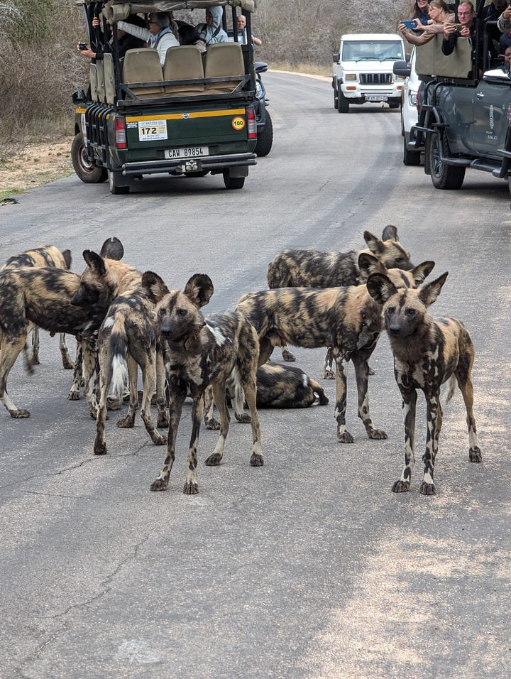 Our guide, Rufus, is there, as are my friends. The thing is that dozens of other people are there too. We drive paved roads (and the occasional dirt trails) and we’re mostly stuck in a car jam whenever we see one of the big five (lion, leopard, rhino, elephant, and buffalo).