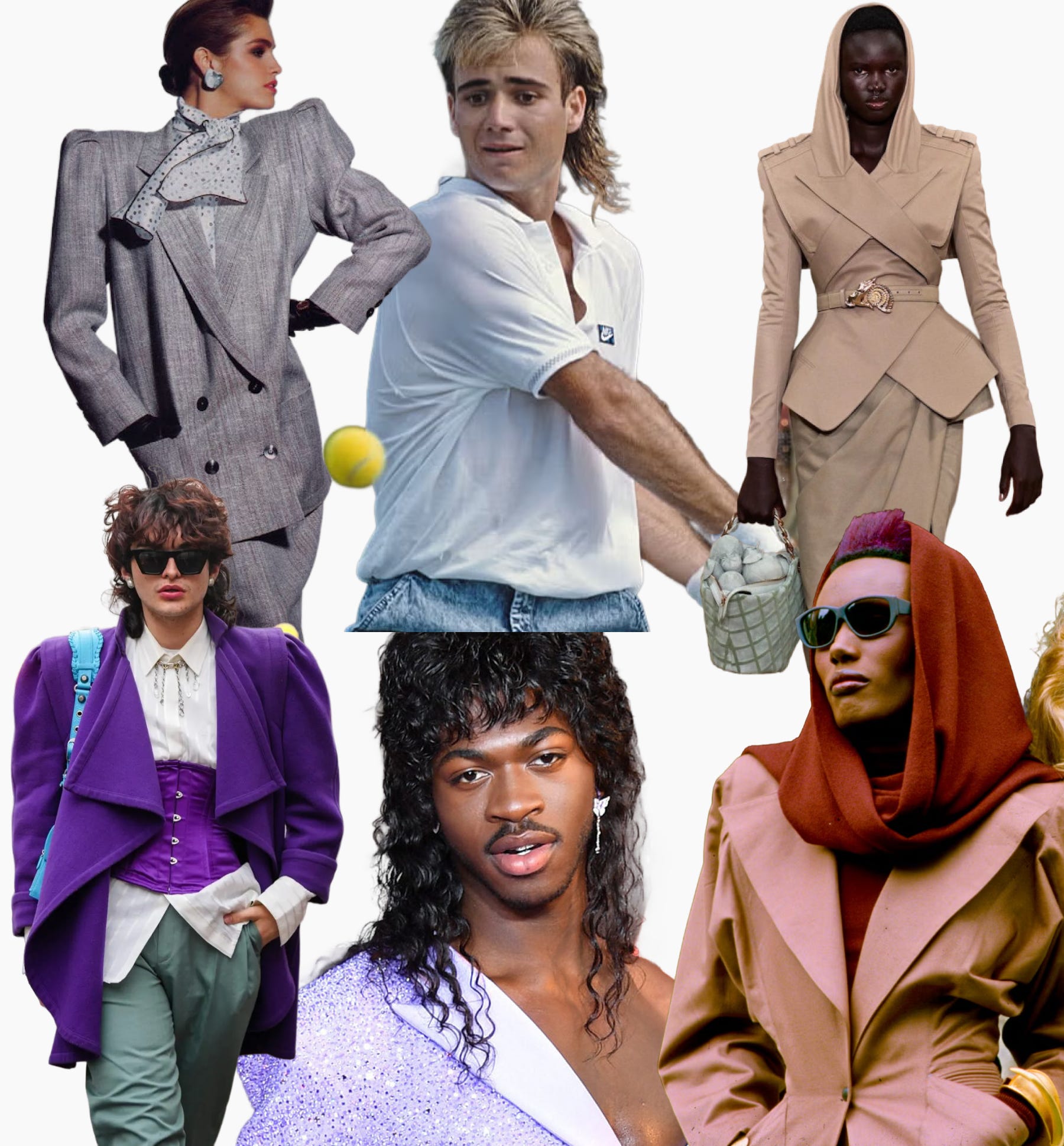 Forty years (!) passed and I smiled in relief as that dark age was over. Yet, as trends do, oversized shoulders started popping up, then bright colors and mishmash, then, to my horror, the mullet came back.