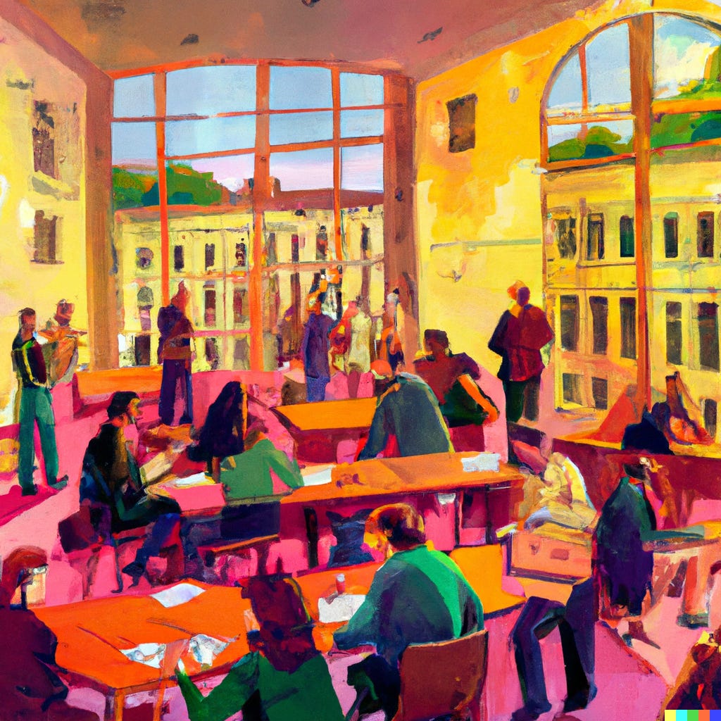 You decide to become a member of a local third space (mix of a coffee shop, cozy living room and classroom) where you can go most days to read and talk to other people. It offers lectures and events where you can explore other interests like the work of Lao Tzu and Baroque architecture. You make some good friends there.